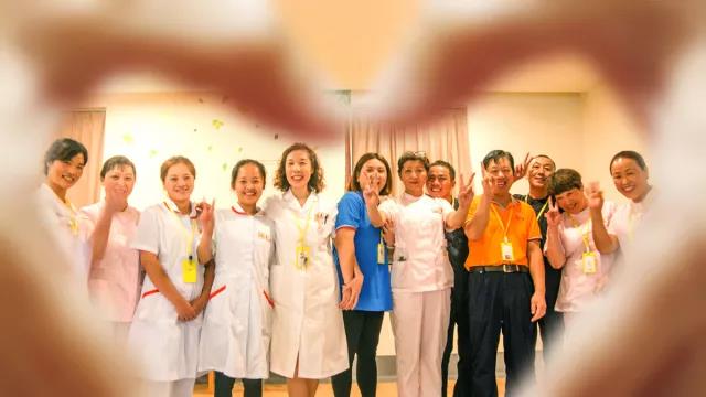 寧波江北康養(yǎng)醫(yī)院的醫(yī)護人員搭出了佰仁堂的標志——銀杏葉