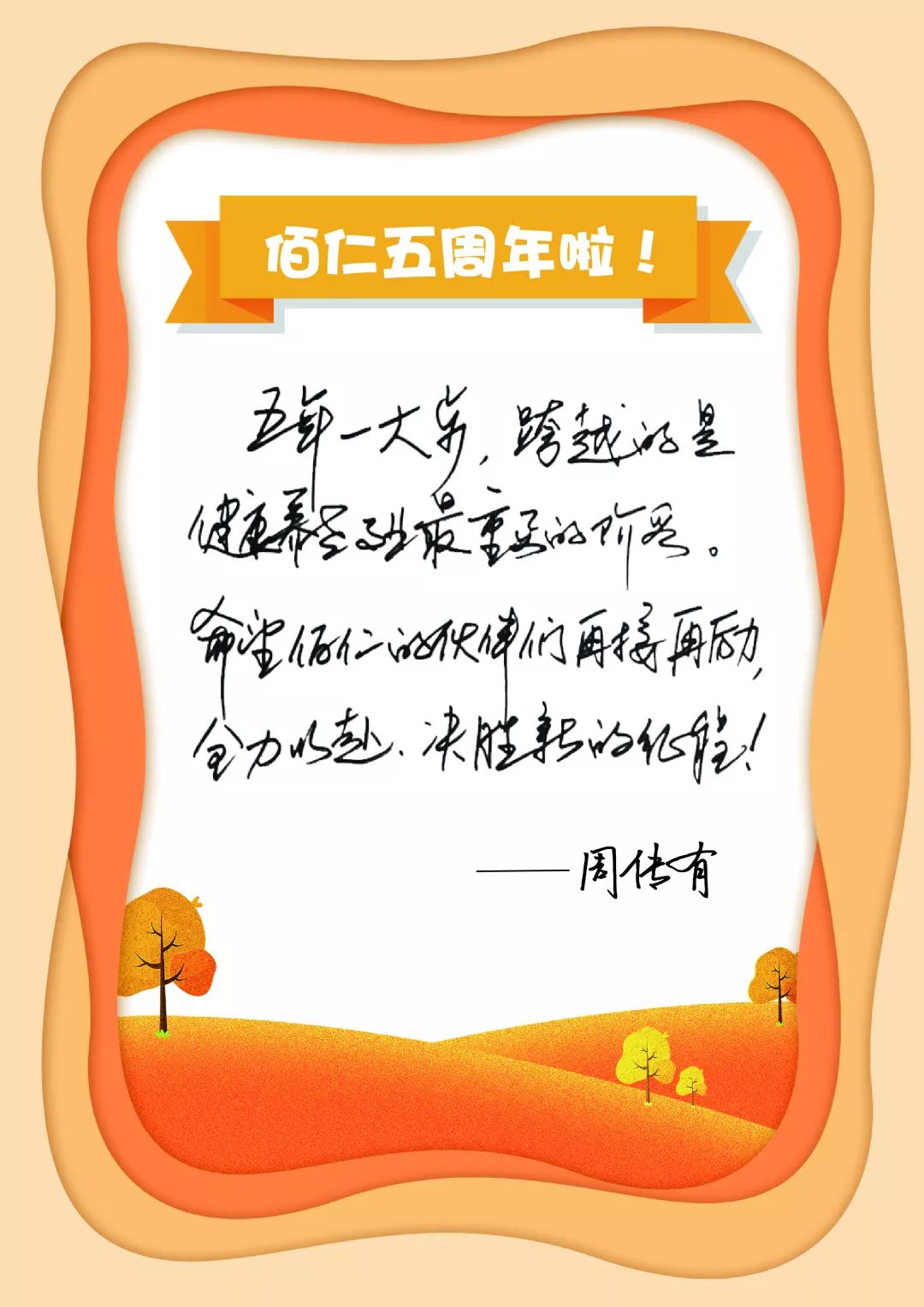 上海佰仁健康產(chǎn)業(yè)有限公司董事長周傳有寄語▲